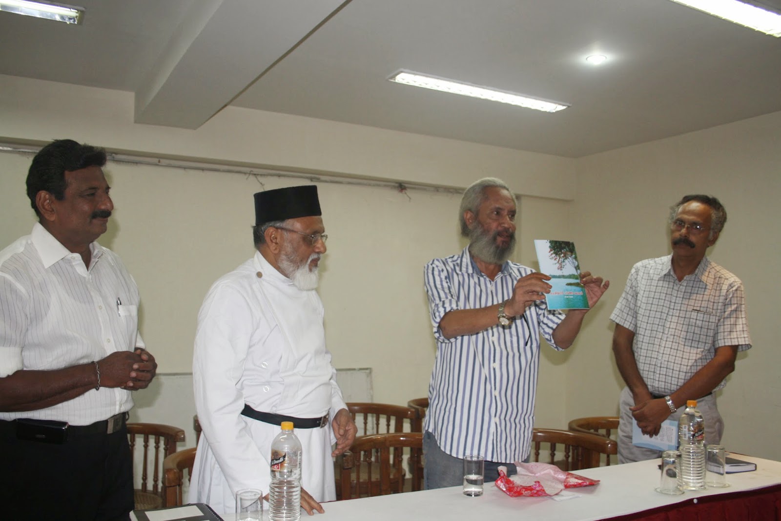 Dr. V.C Harris, Dean of languages and Literature, M G University releases Periyar paranja Kadhakal by Riverkeeper V J Jose. The book wasreleased by Dr. Harris And Rev. Fr. Dr. K.M. George,World renowned theologian.Also seen are Dr.Paul Manalil  and Riverkeeper V J Jose